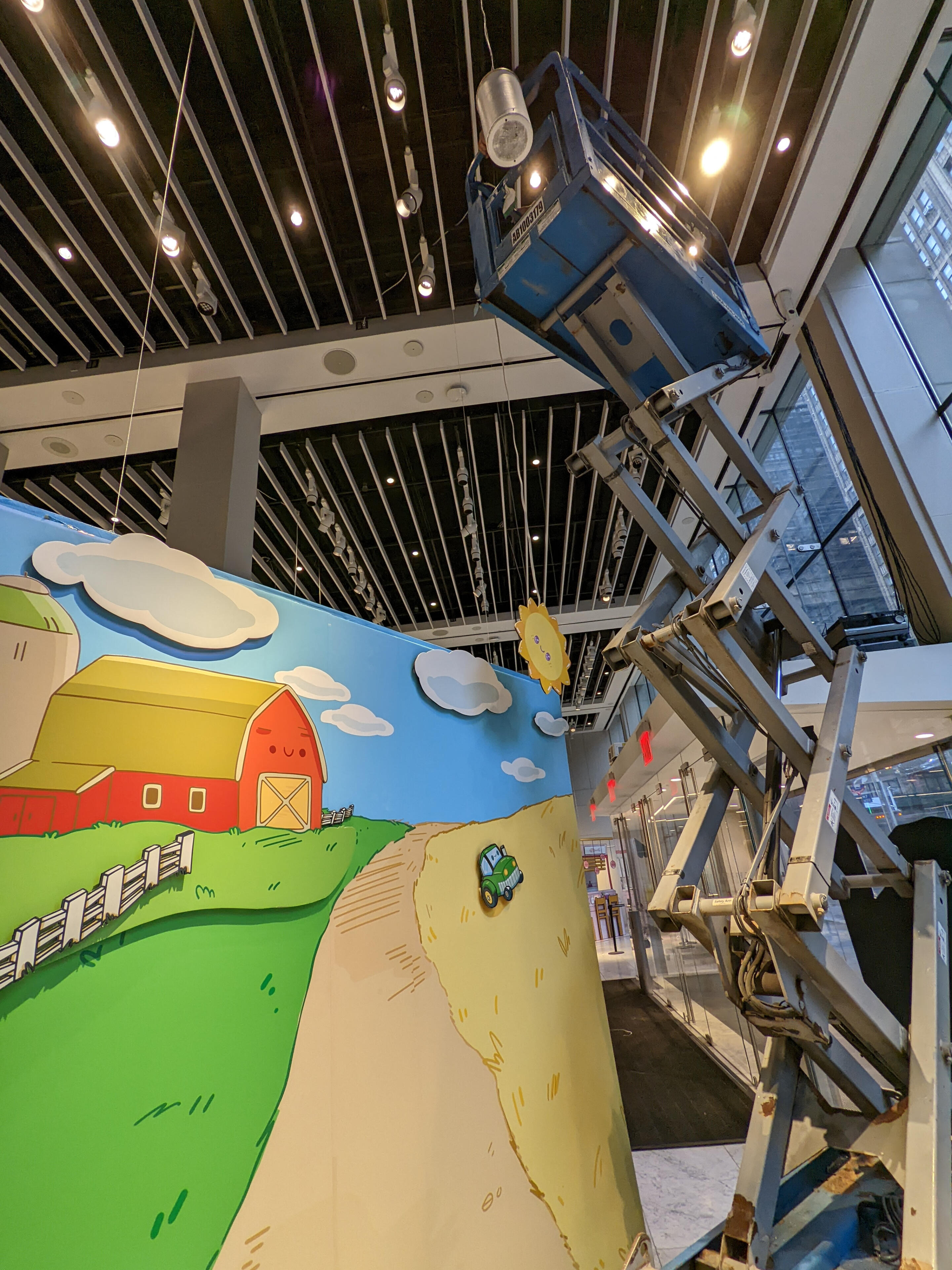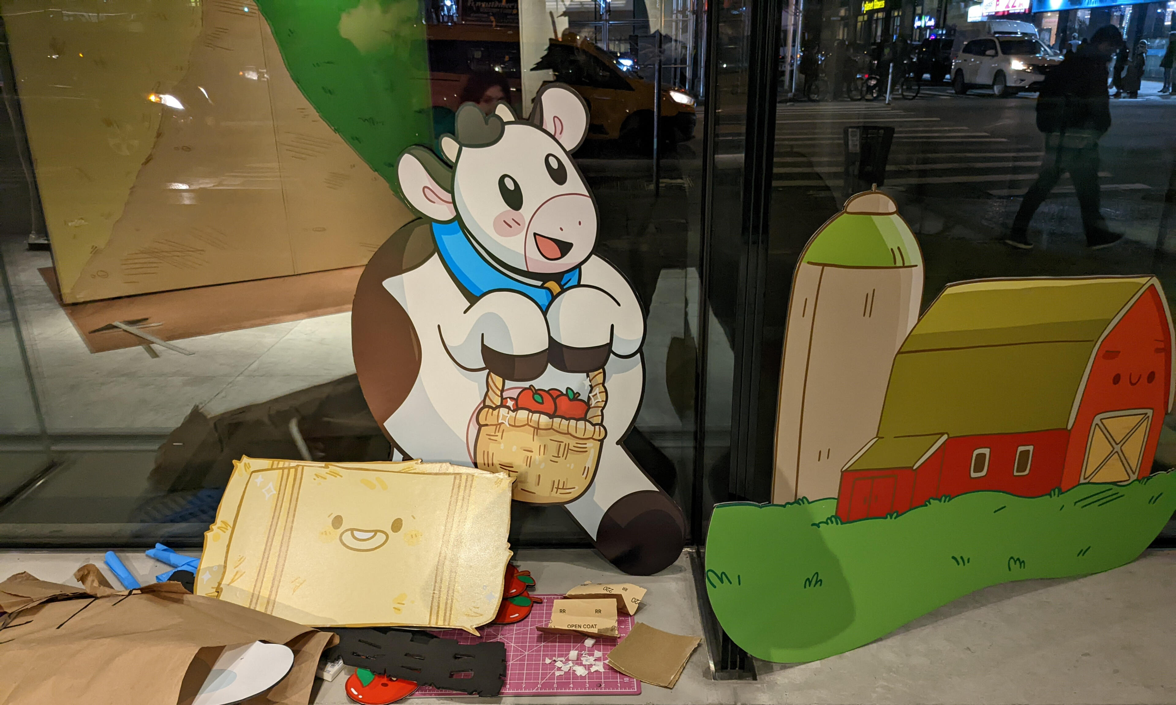 I worked directly with the printing staff to get the graphics printed onto adhesive vinyl which would be later be cut. I also worked on applying the graphics onto the foam board and trimming it to achieve the cutout style. The installation process took a week to complete.